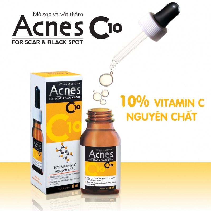 - Sau nhiều năm nỗ lực nghiên cứu, Công ty Rohto-Mentholatum đã thành công trong việc tạo ra sản phẩm Acnes C10 với hàm lượng Vitamin C nguyên chất 10%, ổn định và thấm tốt qua da, không dầu, không chất bảo quản.
