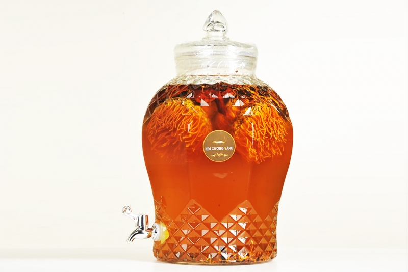 Nên ngâm trong bình thủy tinh hay bình gốm là tốt nhất, nên để vào nơi không có ánh sáng,vì có ánh sáng sẽ làm màu vàng của rượu chuyển dần sang màu thâm, nhìn không đẹp mắt.